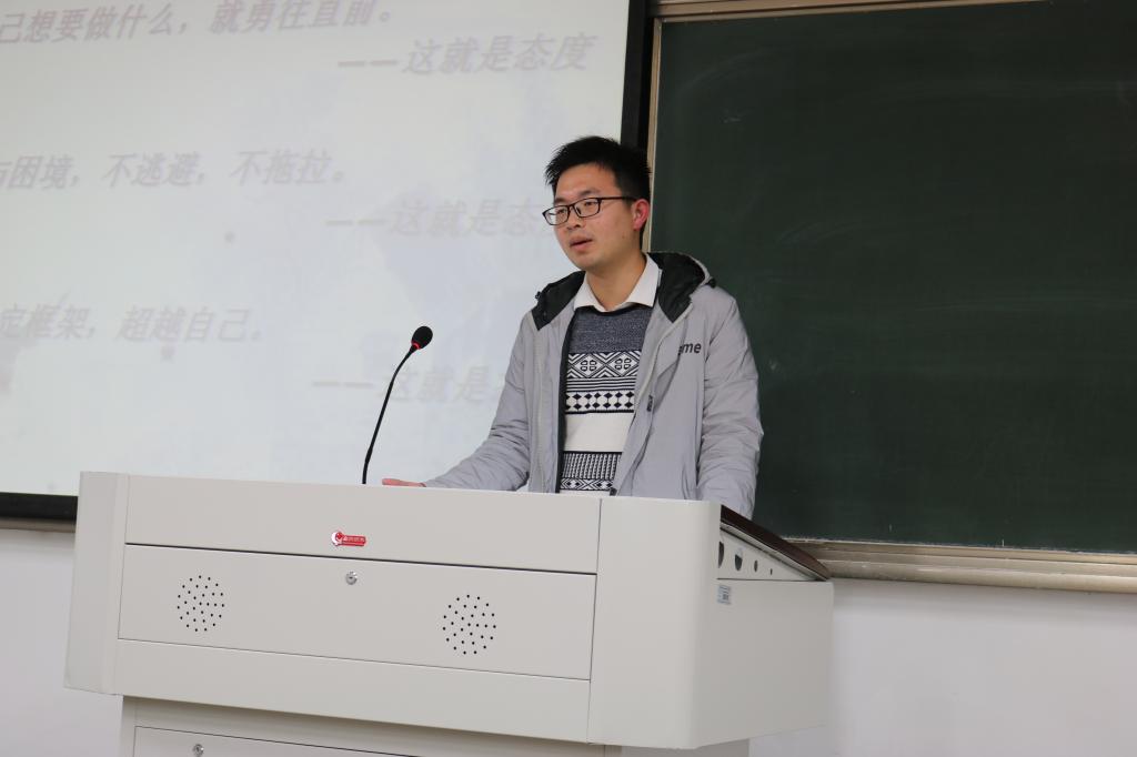 詹纯告诫同学们要注意学习方法,学会用专业技能去帮助学习,不仅在学习中,生活中也要有克服困的勇气和信心,要想走的远不是一蹴而就,需要一步步的攀登,走的更远需从细节入手,从小事开始,挑战从每一个困难的产生就开始了,从你定下目标的那一天就开始了。最后,他勉励同学们,大学生活还很长,每一个人都有足够的时间去努力,去追逐梦想,努力在当下,让自己的人生变得更有意义。