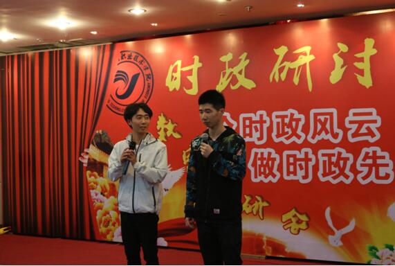 此次活动特别邀请了我校思研会会长尹禹文老师、思政部杨茜老师和我院思研会会长柴优义老师作为本次活动评委嘉宾。时政研讨紧扣“论时政风云做时政先锋”这一主题,以PPT演讲方式展开。参赛的有六个班级,他们的题目分别是:“安全的笼子论”、“墙墙不联手”、“反腐倡廉 我们在行动”、“和平”、“萨德事件”、“清风颂,正气歌”。