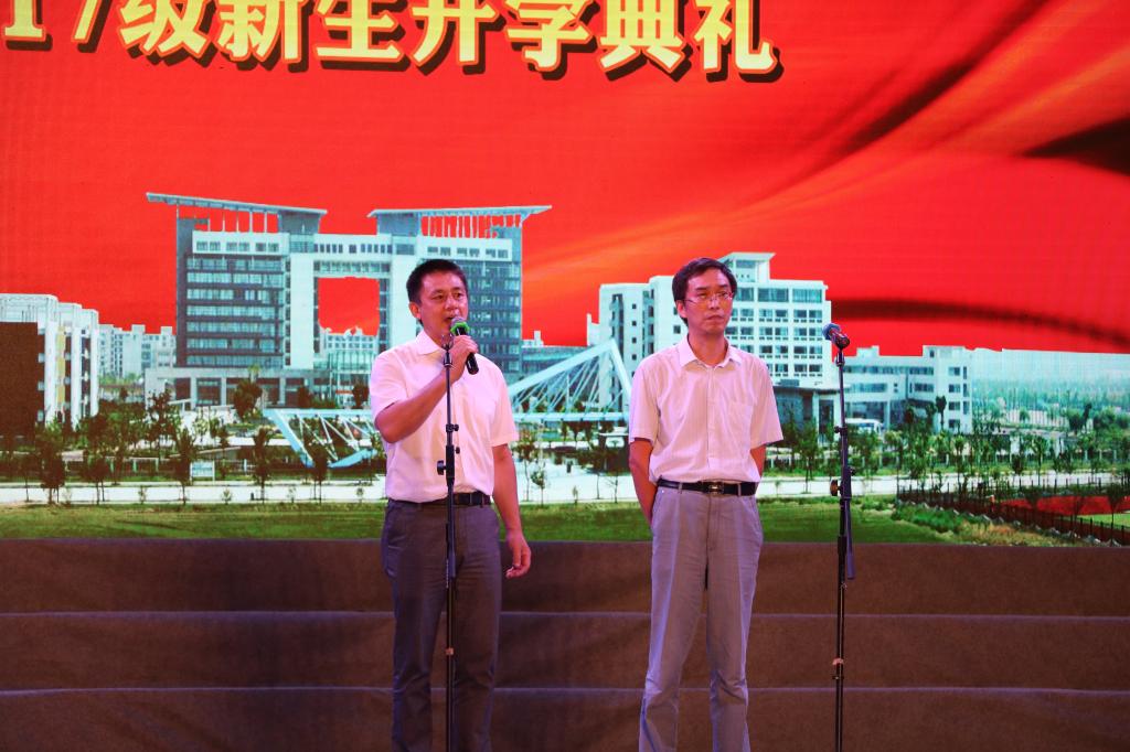 流光溢彩迎新夜,心心连新齐飞扬。2017年9月27日晚,我校在文体中心隆重举行了“点燃青春 激扬理想”为主题的2017级新生开学典礼。校长陈丽能,党委副书记、副校长邵庆祥,副校长吕红刚,纪委书记张伟萍,副校长黄春麟、姜宇国,党委委员裘军民,相关职能部门负责人、各二级学院领导班子、辅导员、新生班主任、承训部队军官及全体新生参加了开学典礼。