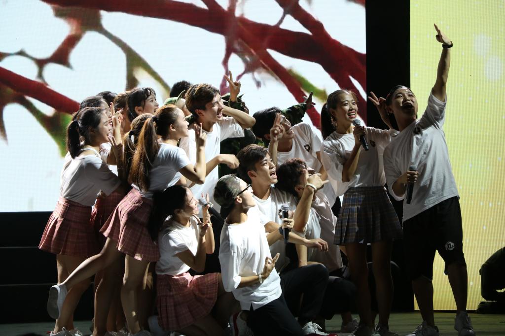 接下来是教官们精彩的军姿表演《军武威风》。他们队列整齐,出拳虎虎生威,踢腿凌厉有力,他们斗志昂扬,尽展男儿阳刚之气。台下的同学们发出阵阵惊呼,鼓掌声经久不息。商贸流通学院的同学们带来的《经院Freestyle》,更是精彩绝伦,将现场气氛推向高点,同学们被现场气氛感染,随之欢呼鼓掌。本次晚会就在我校合唱队的优美歌声中落下帷幕了。
