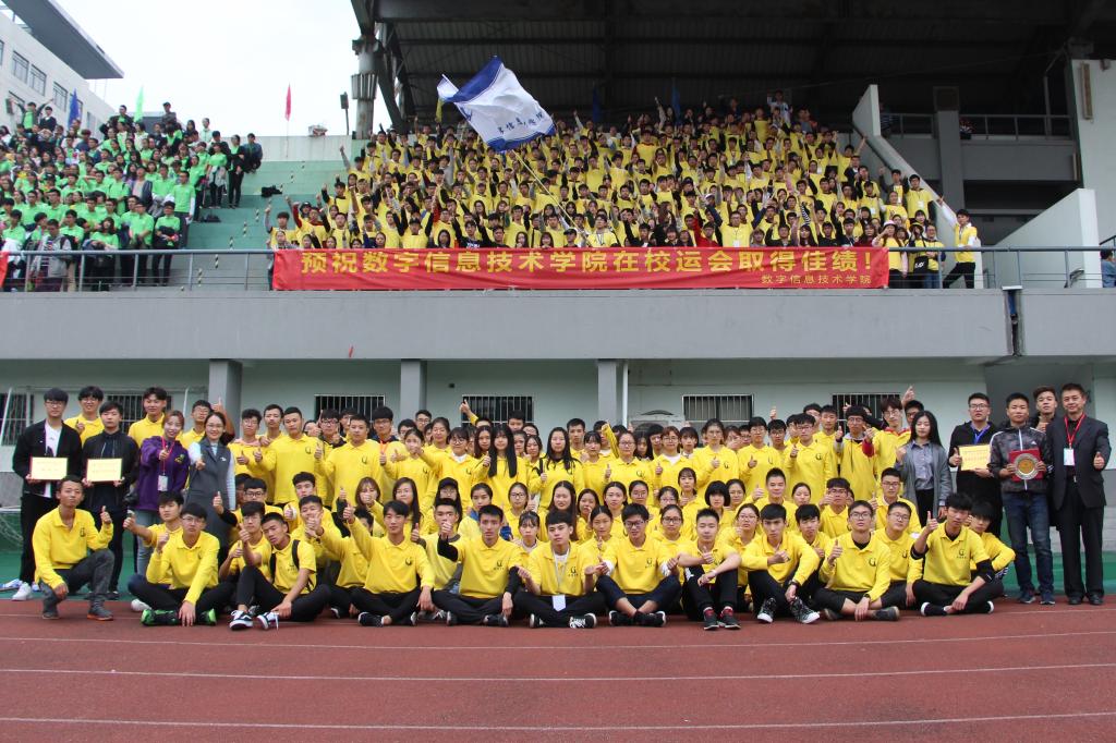 经过一天半的拼搏,数字信息技术学院获得精神文明二级学院奖、精神文明代表队、大三代表队荣获男子团体第四名。我院的贾峰同学打破了800米的校记录,获最佳运动员奖,张欣然获女子跳高第一名,获得拼搏奖,耿若婷获女子铅球第一名,陶佳龙获男子跳高第一名,由S602117网络班20名同学组成的20人21足获得团体第一名。