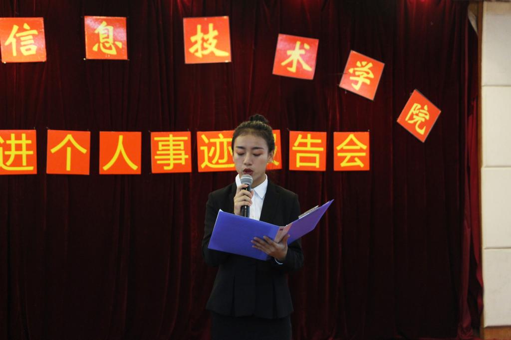 2017年11月27日晚上6点,数字技术学院学生会在行政楼三楼报告厅举行了先进个人事迹报告会。本次报告会的嘉宾有数信学院学生会指导老师龚瑾老师,校勤助中心负责人等。