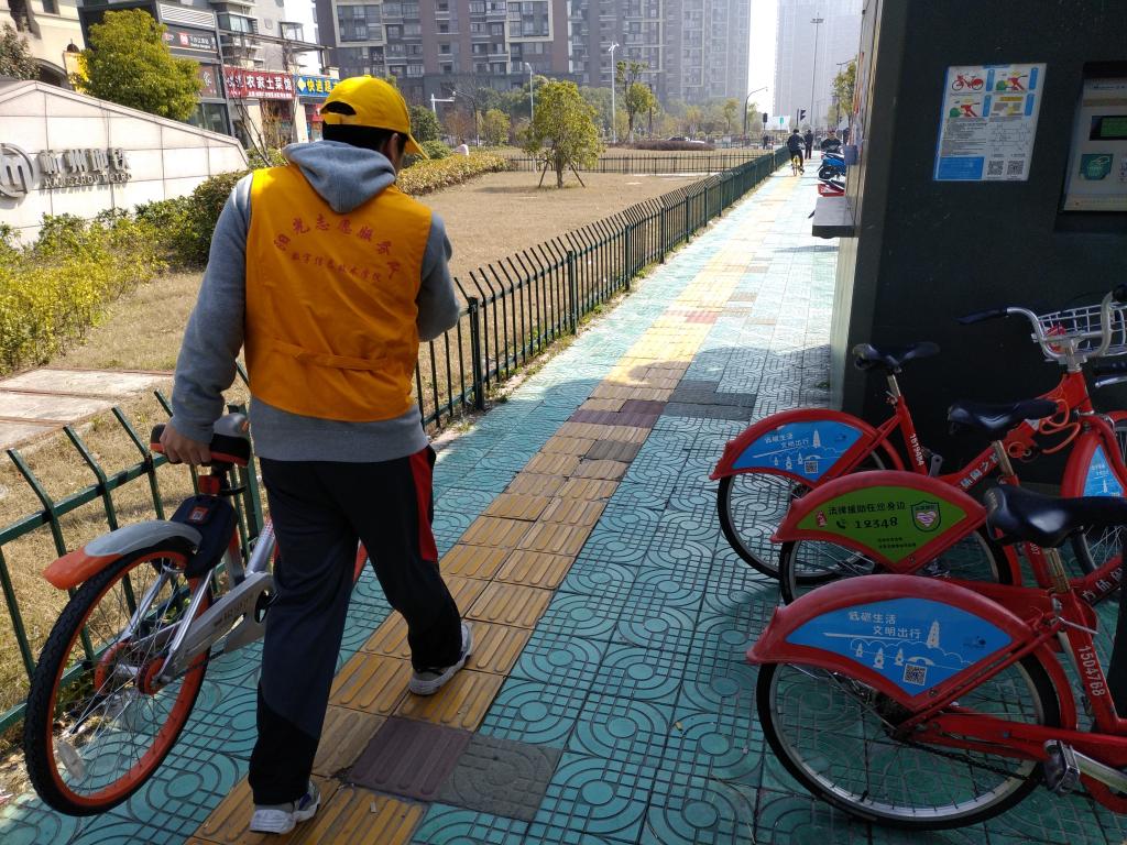 下午一点,志愿者们分成两队,一队在学长学姐们的带领下,整理了校园周边摆放杂乱、随意堆叠的共享单车,并将共享单车分类放好。期间志愿者们还对随意停放的单车使用者进行了劝导,积极宣传“用它就要爱护它”的共享理念。