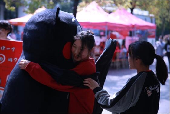 “爱的抱抱”是志愿队的小伙伴们穿着熊本的玩偶服与路过的人拥抱的爱心活动,得到温暖拥抱的有陌生的同学,有外卖小哥,也有打扫卫生的大叔,还有懵懂的小孩。大家在得到拥抱后都露出了满足的微笑,也许有时候一个大大的拥抱就能把所有的委屈和负能量都抛到脑后。张开双臂,包容各式各样的人群,以活力热情陪伴着种种心情。有些温暖,不需要目光和赞叹,有些拥抱,会一直持续升温。希望爱的拥抱这个有意义的活动能带给大家满满的正能量,并且能够带着善意去拥抱身边的人。