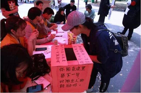 而“陌生人互留纸条”是让那些素未谋面的陌生人之间通过一个纸箱互相交换写着鼓励句子的纸条,通过这种方式把正能量传递,也许只是陌生人不经意写下的一个句子,可能也会给对方深深的鼓励,有了坚持下去的勇气。