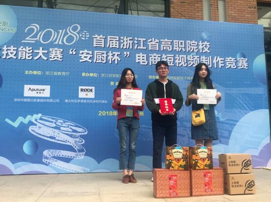 10月21日,2018年首届浙江省高职院校职业技能大赛“安厨杯”电商短视频制作竞赛复赛在浙江经贸职业技术学院落下帷幕。在项目指导老师陈凯健的精心指导下,我院任泽群、郑一丹、马玉莹三位同学团队协作、顽强拼搏,和来自全省10所高职院校代表队的20支队伍、60名选手进行复赛的激烈角逐,最终我院代表队喜获一等奖及企业一等奖。