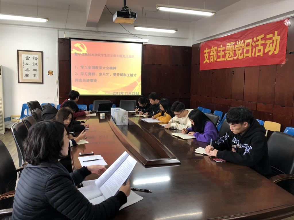 学生党支部开展主题党日活动学习“2018年全国教育大会精神及黄群、宋月才、姜开斌和王继才同志先进事迹”