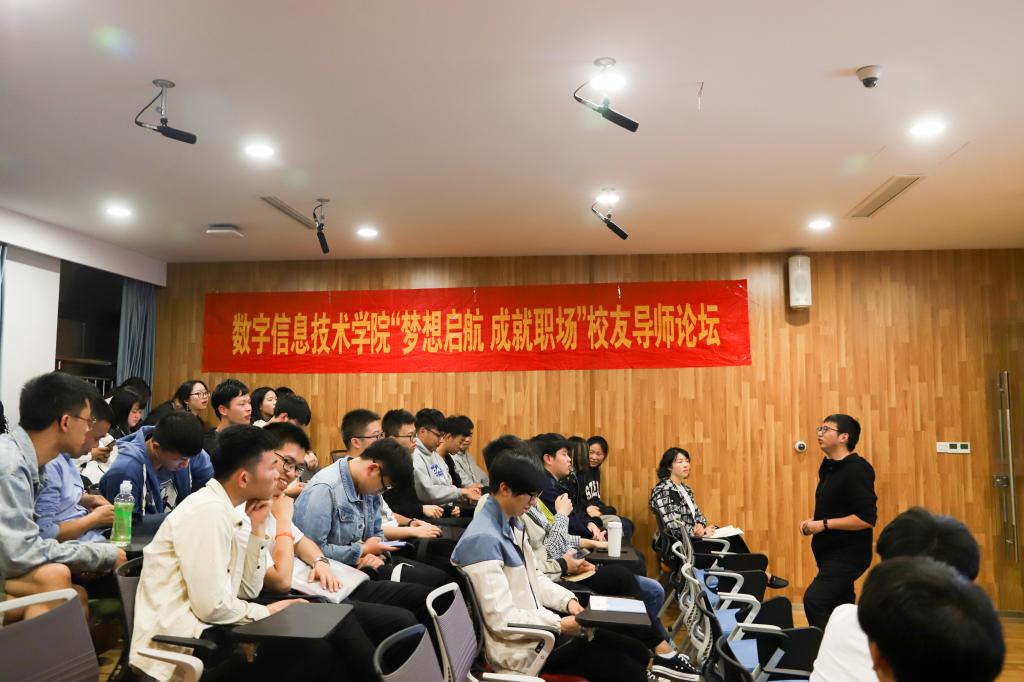 本次校友论坛是数字信息技术学院2018年校友导师分享系列之一,鲁金达校友根据自身的职业发展历程,就如何确立学习目标、为就业做好准备谈了自己看法,也为大家介绍了优秀的现代企业文化。有目标就会更有信心,相信今后,同学们一定会踏实奋进、自强不息,做新一代的有为青年!