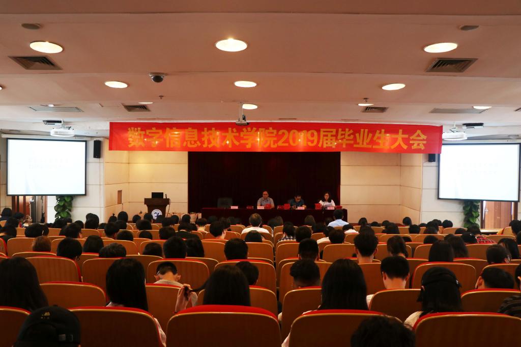 6月3日上午,数字信息技术学院在行政楼三楼报告厅隆重举行2019届毕业生大会。2019届全体毕业生和学院院长、总支书记罗振华,副院长宋益众,党总支专职副书记陈可,辅导员柴优义以及各毕业班班主任共同参与了大会。