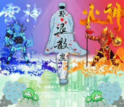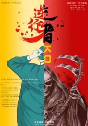 作品构思创意:色调为暖色系。构图为左右对称,左边是代表逆行者,右边是代表疫情的死神。文字为“逆行者ko死神“,与所向披靡相呼应,表达出人们的期望与信心。正下方配文有着民族精神和优秀品质,右上角文字传达了人们心中美好的祝愿,而左上角的文字诉述了我们对待疫情的态度。左下角配文是人们基本应该做的事情,在于宣传意识。