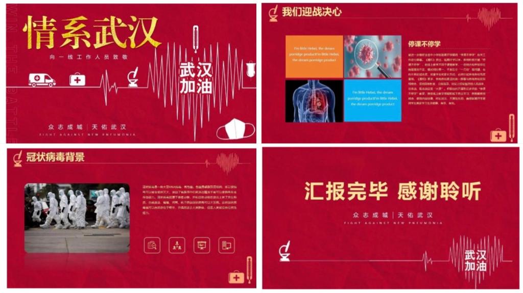 1.将疫情的来源,疫情的情况等信息通过ppt的方式让大家学习了解,并和同学互动,探讨最近生活情况,以便于了解同学们的情况。