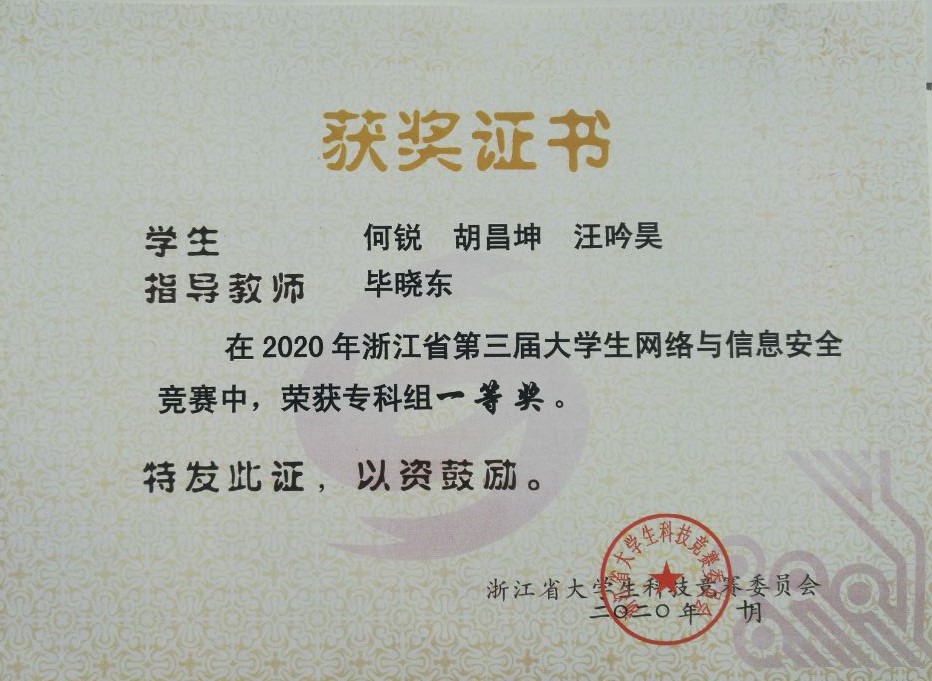 2020年浙江省第三届大学生网络与信息安全竞赛高职组一等奖