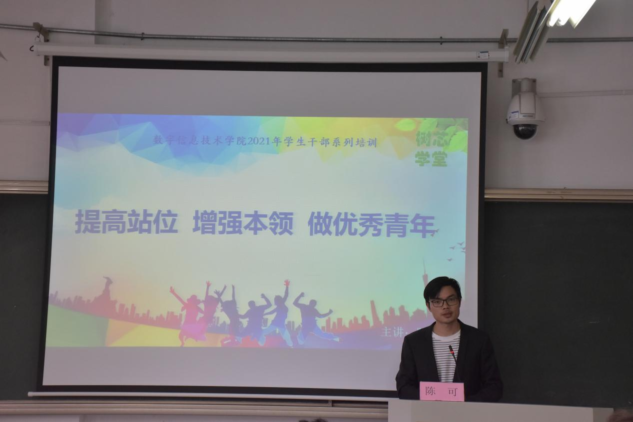 4月29日,数字信息技术学院“树芯学堂”第一课开讲,由学院党总支副书记陈可带来题为《提高站位 增强本领 做优秀青年》的“五四”青年节专题讲座,学院团总支、学生会和思研会全体干部70余人参加。