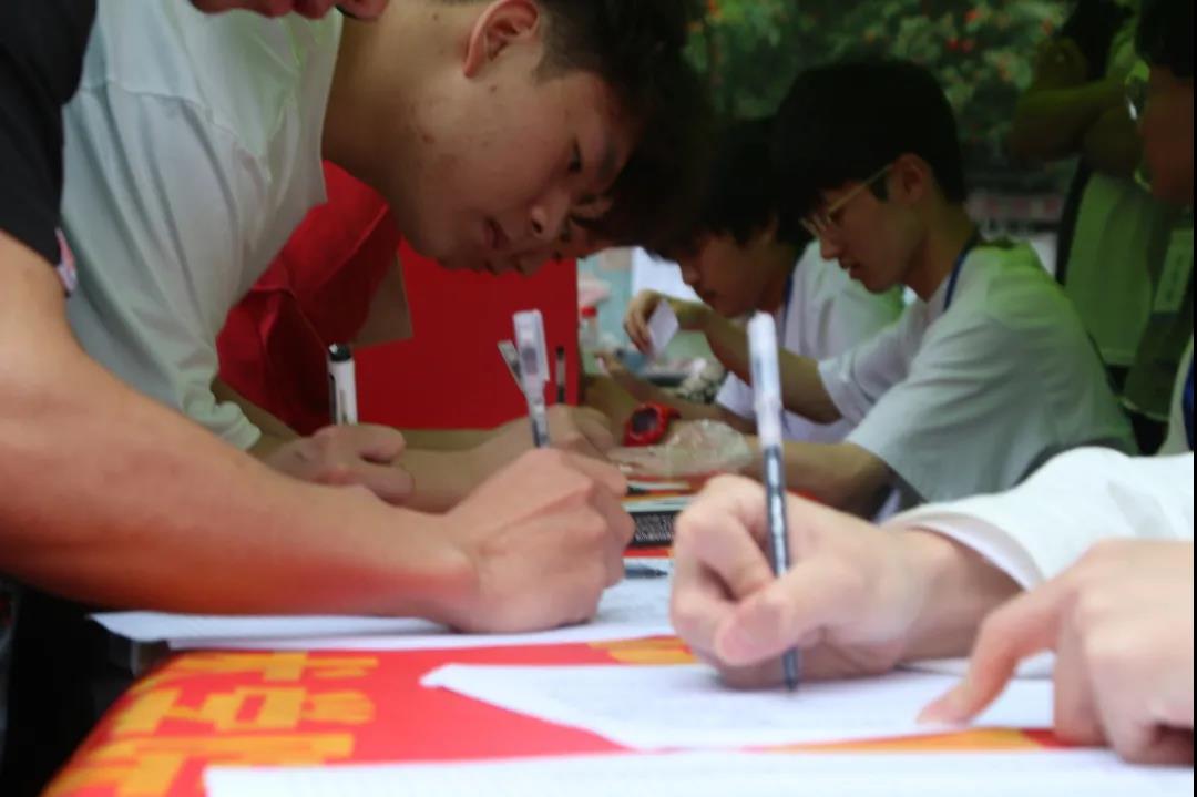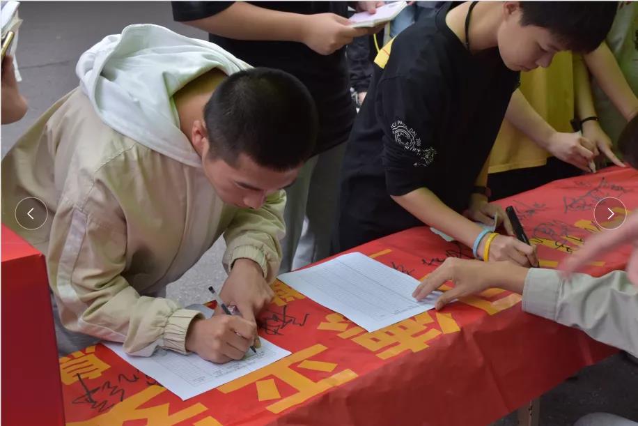 活动上,同学们在横幅上纷纷签名,为实现“群策群力防范诈骗,同心同德平安校园”目标表决心、宣誓言。