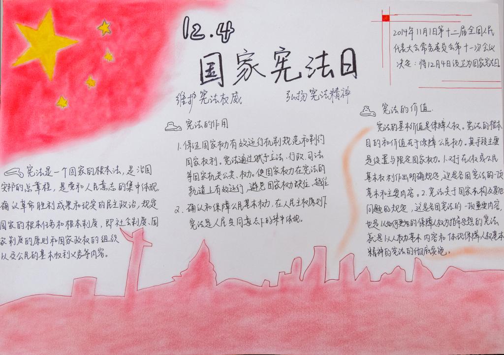 12月4日是一年一度的国家宪法日,在第八个国家宪法日来临之际,数字信息技术学院学生党支部于11月29日至12月3日开展了“五个一”宪法宣传周活动:走访一次宪法起草旧址、开展一次宪法手抄报比赛、传唱一首宪法歌曲、诵读一段宪法条文、观看一次宪法宣传片,将宪法宣传活动与主题党日活动有机结合。