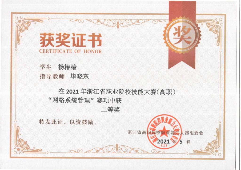 2021年浙江省职业院校校技能大赛(高职)“网络系统管理”二等奖
