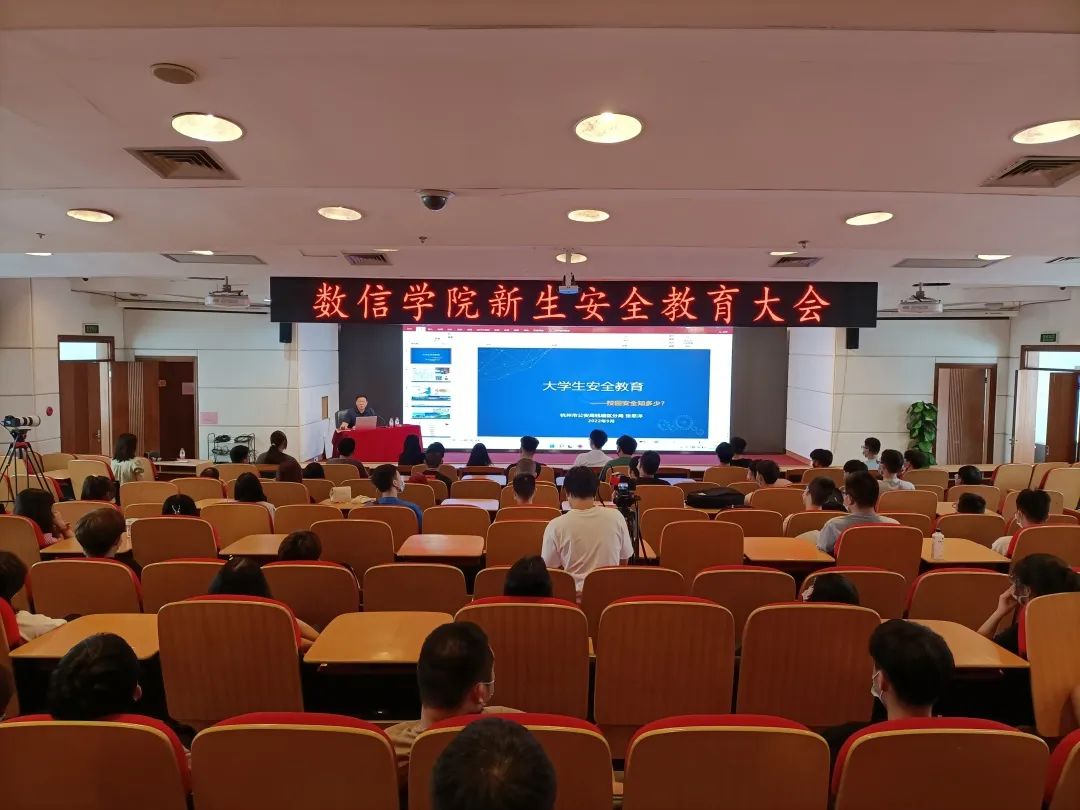 为强化新生的安全意识,9月18日,学院为新生带来第一场安全教育讲座,以“线上+线下”的形式进行,主场设在报告厅,9个分会场设在学院实训室。讲座由杭州市公安局钱塘区分局反恐怖大队教导员、全国优秀人民警察、杭州市劳动模范张思洋警官主讲,学院党总支副书记陈可携全体新生参加,辅导员林婷婷主持。
