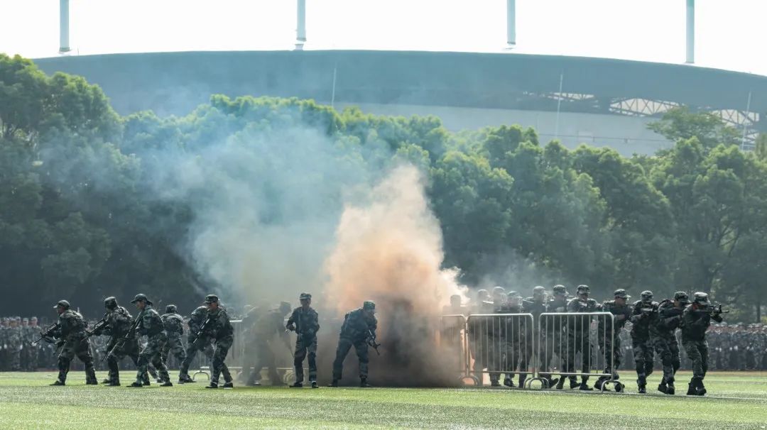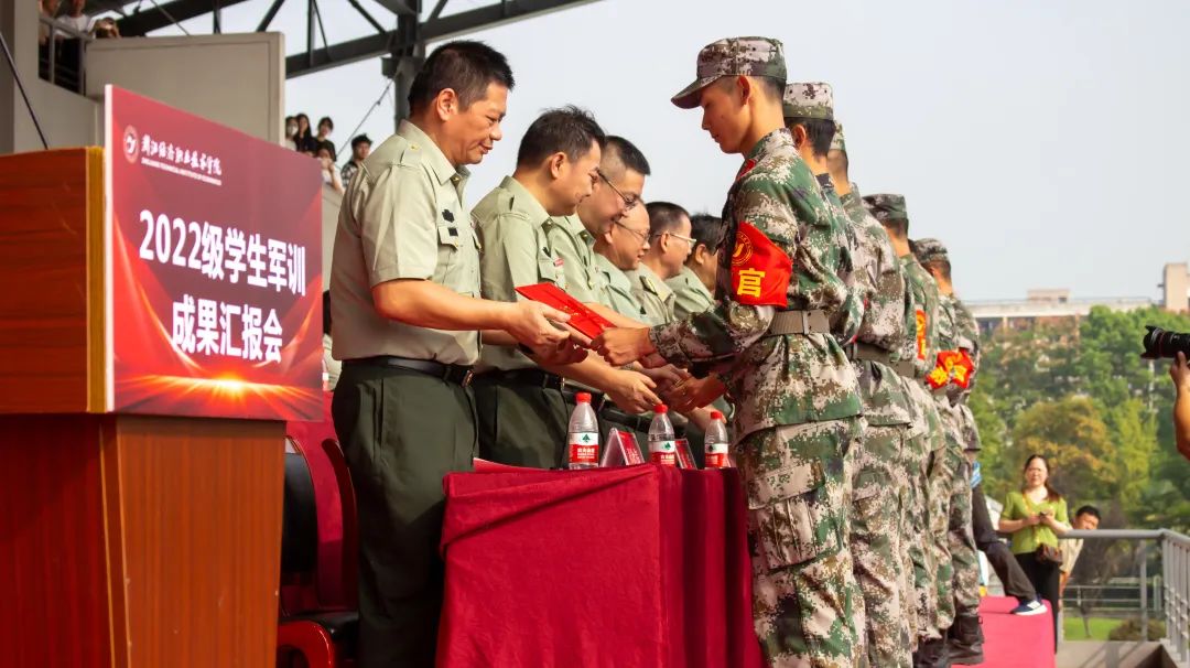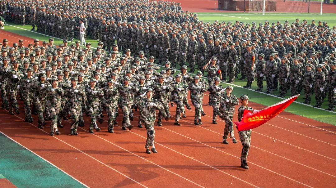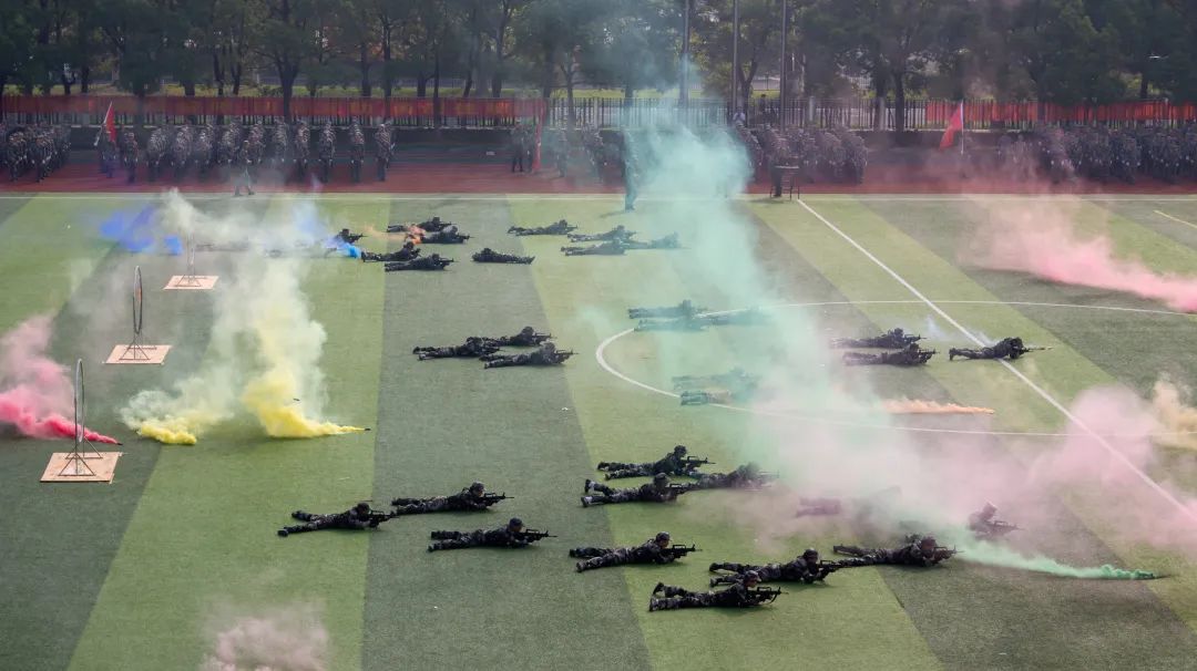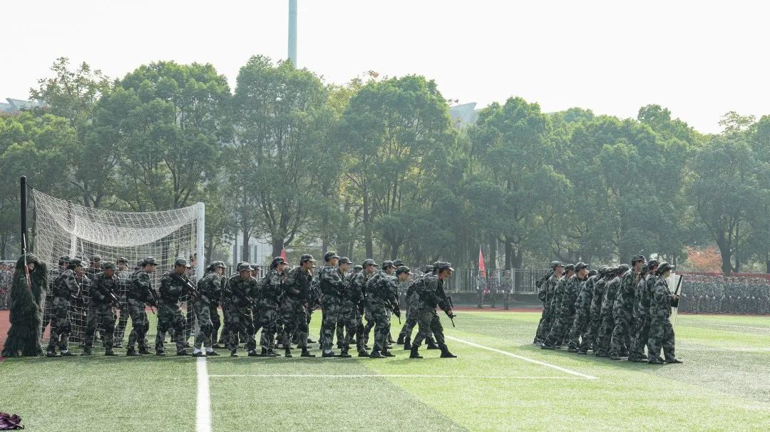 9月30日上午,我校在学校田径场举行了军训成果汇报会,我院三营全体新生列队参会。