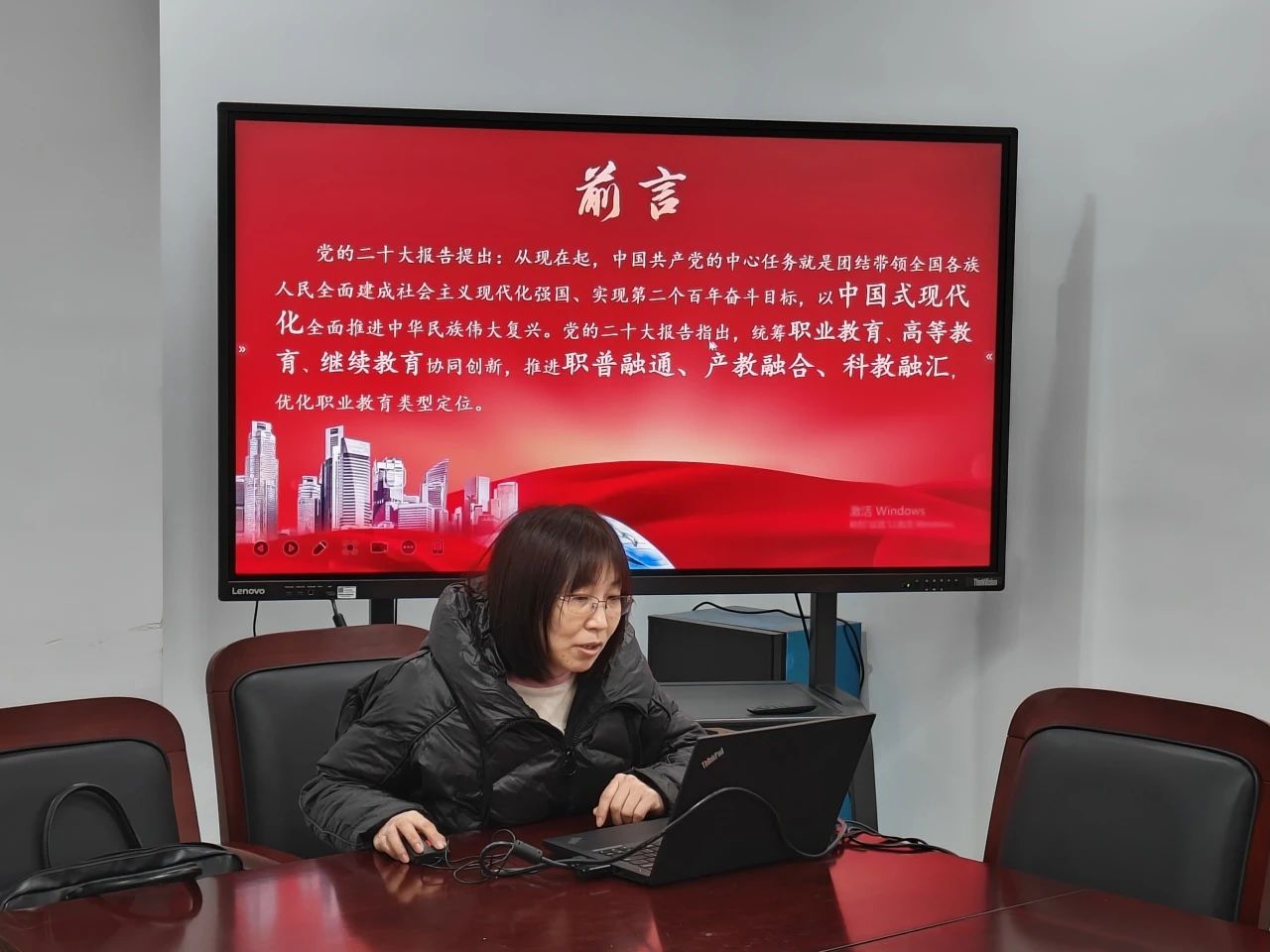 会上,党总支组织统战委员诸葛燕领学党的二十大报告中关于中国式现代化的指示,“推进职普融通、产教融合、科教融汇,优化职业教育类型定位”,并以“职业教育发展路径探析”为主题,谈到四项重点工作: