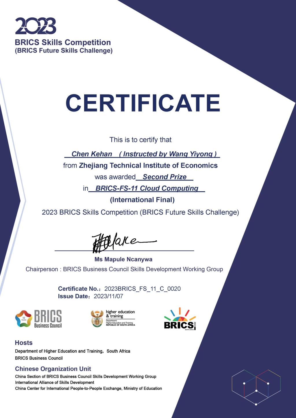 3. 2023金砖国家职业技能大赛云计算赛项国际总决赛二等奖