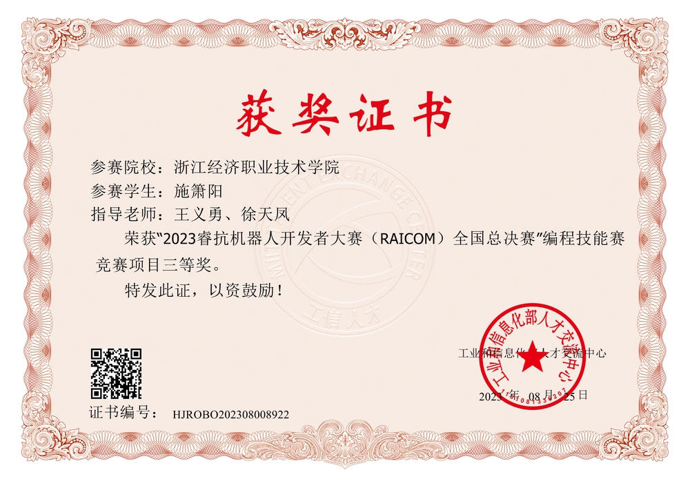 4. 2023睿抗机器人开发者大赛全国总决赛编程技能竞赛三等奖