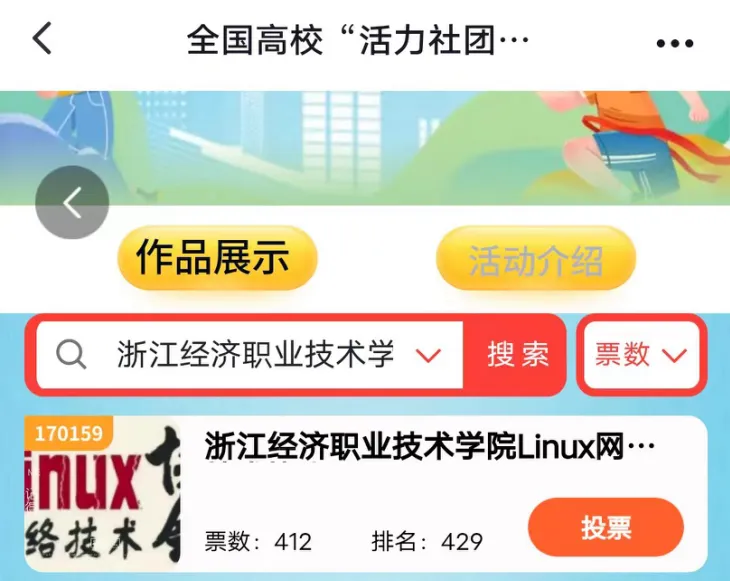 方法一:输入关键词“浙江经济职业技术学院”,跳转到相应界面,即可投票。