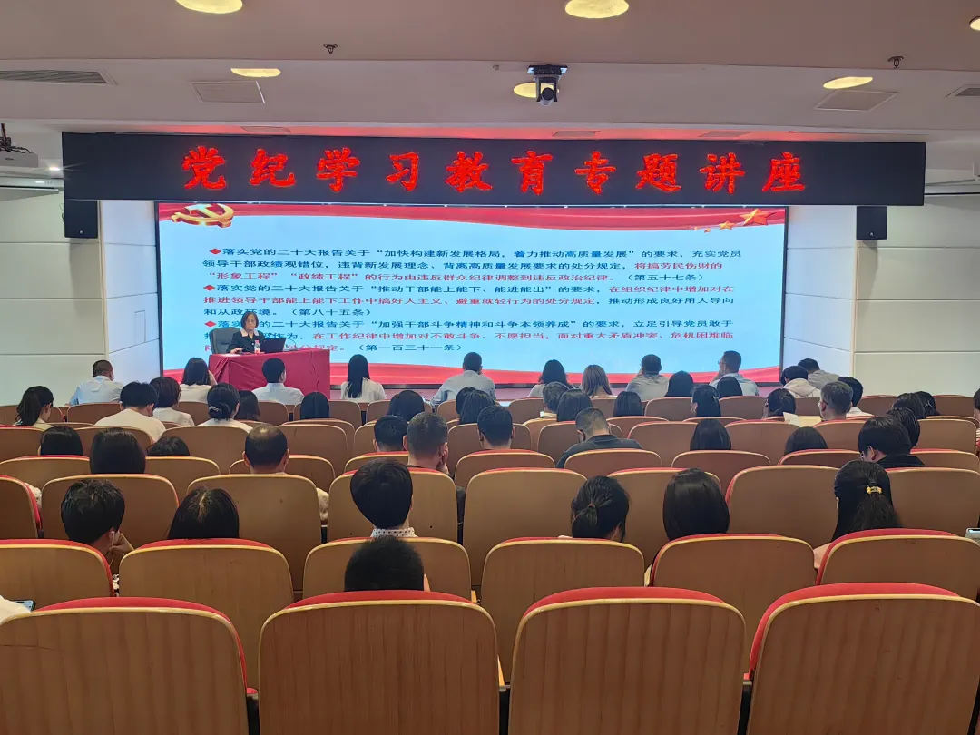 5月14日,我院在报告厅成功举办了一场 “党纪学习教育专题”讲座,学校党委委员、纪委书记朱利萍担纲主讲,数字信息技术学院、工商管理学院和梦想创业学院的全体教职工参加。
