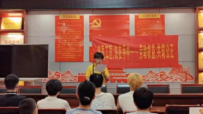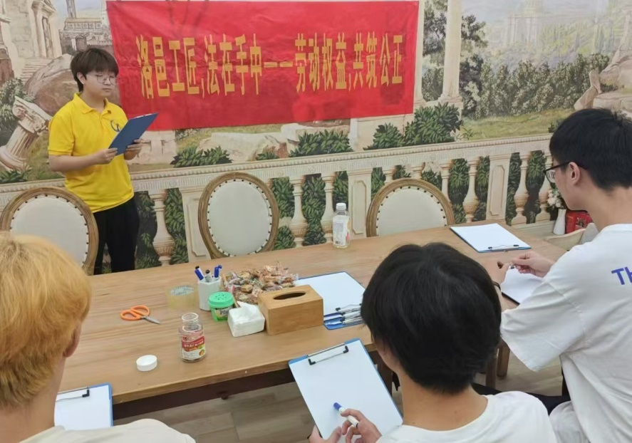 第一站,实践团到达洛阳涧西区工农乡社区青年人才服务中心,召集青年大学生与青年务工者宣讲《劳动法》相关知识,数十名青年大学生、适龄劳动者参与学习。尤文龙通过“提出疑问、举例子、解答”等形式使劳动法的观念深入人心。