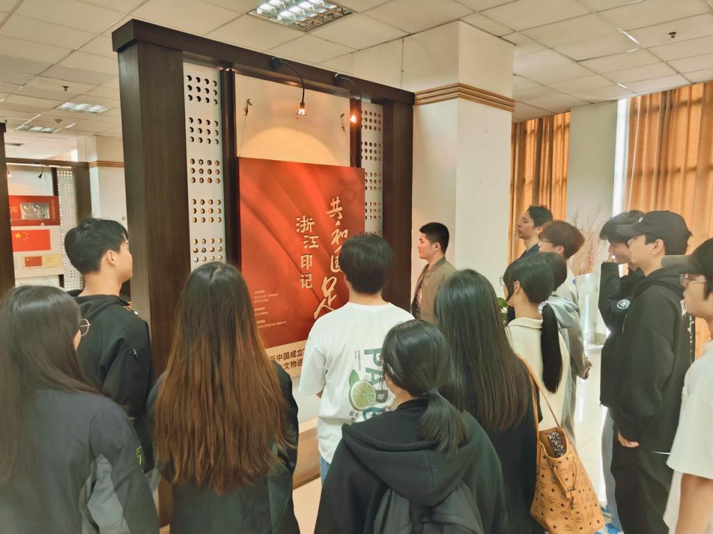 在讲解员的讲解下,参观者们依次参观以“共和国印记”为主题的联展,深入了解“浙”里印记革命文物、银龄邮集和青年大学生手绘作品。大家通过一幅幅生动的图片、一句句细致的讲解和一段段详实的文字,更加贴近地了解“浙”里风采,激发源自心底的爱国热情和民族自豪感。