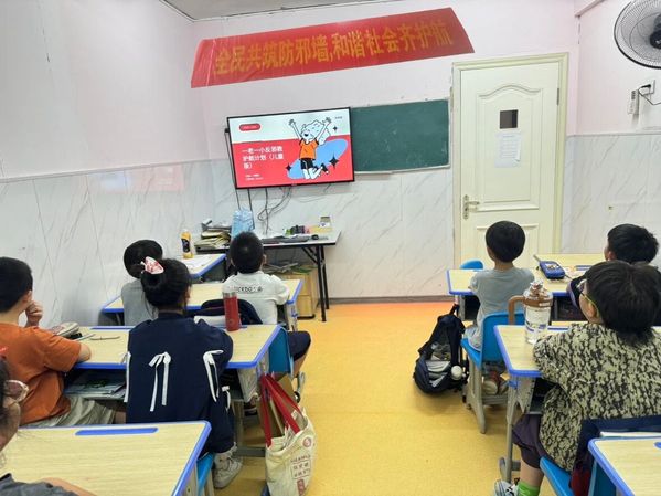 在社区工作人员的热情协助下,暑期托班的孩子们齐聚温馨的活动室,开启了一场特别的反邪智慧之旅。队员们利用精心设计的卡通PPT,将复杂的反诈知识化作生动的故事和图片。高潮是反诈脑筋急转弯问答环节!“陌生人送的超能力糖果能吃吗?”“公园里有人要带你去找‘神奇乐园’怎么办?”孩子们小手举得高高,争当“安全小博士”。答对的小朋友兴奋地拨动幸运大转盘,收获小文具或掌声,笑容灿烂!在欢笑与思考中,拒绝诱惑、保护自己的意识,如同点亮的小灯泡,在孩子们心中闪耀得更加明亮清晰。