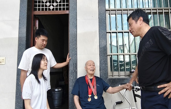 跟随潘主任的脚步,我们拜访了抗美援朝老兵陈祖如。95岁高龄的陈老红光满面、精神矍铄,谈及战场经历,他思路清晰、语气坚定:“那时,我们在枪林弹雨里,主要负责炮弹运输。” 每一个字都带着力量,将炮火轰鸣、生死一线的场景重现眼前。门边悬挂的 “光荣之家” 牌匾,历经岁月洗礼,见证着陈老与战友们的无畏与奉献。