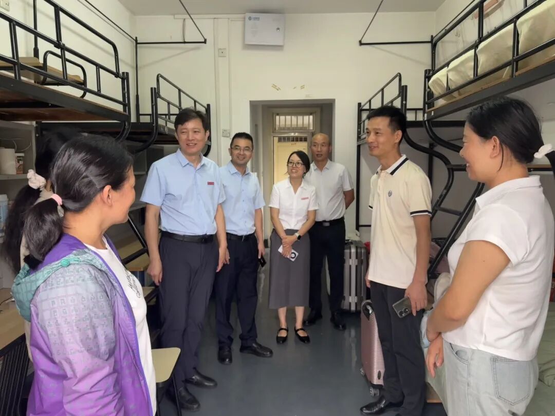 校领导一行来到学院迎新现场,走访慰问迎新师生,详细了解新生报到注册情况,并与在场新生及家长亲切交流。