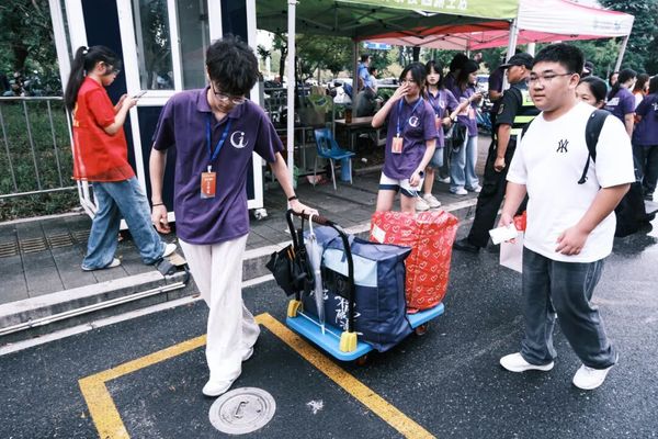 学院志愿者们从早上7点到下午6点,始终坚守在报到点、教学区、宿舍区三大“服务阵地”。从信息核对、系统注册的“一站式”服务,到校园路线引导、行李搬运的暖心协助,志愿者们全程在线,指引方向时的笑容亲切温暖,接过行李时的动作利落有力,用十足的责任心与热情,让新生刚进校园就感受到“芯”家的温度。