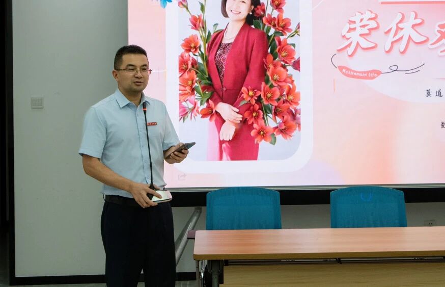 欢送会上,一段温馨回忆视频带领大家回顾了邸老师从青涩岁月到桃李满园的执教历程。学院党总支书记肖紫嫣为邸老师佩戴“光荣退休”绶带,楼建列院长颁发退休证书并献上鲜花,仪式简朴而庄重。