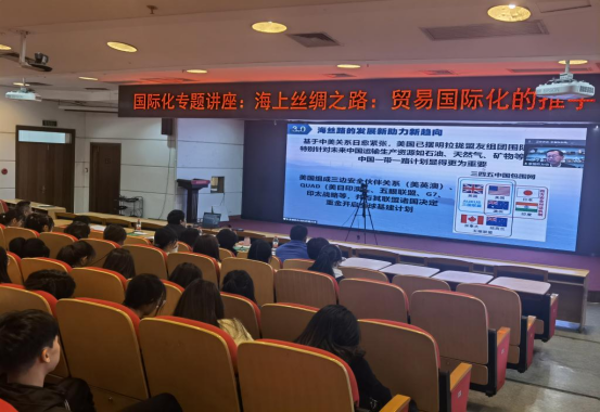 陈友信从海上丝绸之路的发展历史及马来西亚与海丝路的渊源讲起,突出强调了在百年未有之大变局的当下世界格局中,中马两国携手并进,互补发展,促进形成中马两国和中国-东盟之间新发展格局,提出在“人类命运共同体”的框架下,形成“海洋命运共同体”。他鼓励同学们以奋斗创新为帆,开拓拼搏为桨,为响应“一带一路”倡议打好基础。